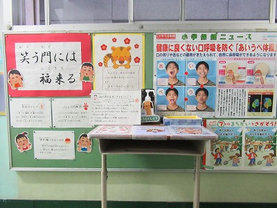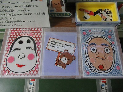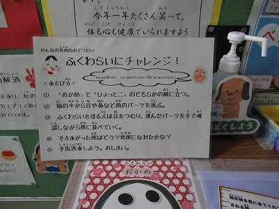 保健室前には「福笑い」が置いてあります。皆さん、「福笑い」という遊びを知っていますか?一度やってみませんか?そして、大いに笑い、感染症に負けないよう免疫力を上げてみませんか?
