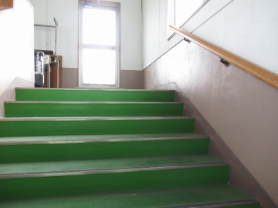北校舎の2階から屋上に上がるペントハウスの階段や踊り場には、使用できなくなった机が並べられており、雨漏りがあり、机の鉄の部分の錆が床に付着していました。この箇所は屋上への唯一の避難経路のため、校務主任が夏休みに片づけをし、非難しやすい環境にしてくれました。ありがとう、校務主任さん。
