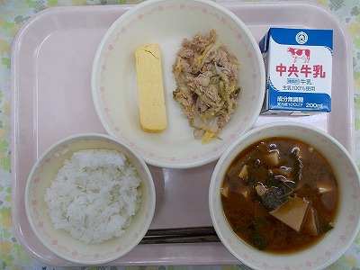 ごはん 玉子焼き 白菜とツナのおひたし 味噌汁