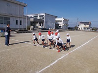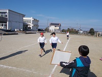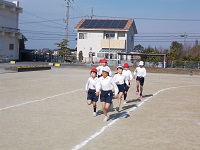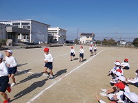 10周の半分の5周を過ぎると走っている子どもたちの息もあがってきていました。そんな時、「あと〇周だよ!」と励ます声が見学している子どもたちから出されました。男子の時には見学している女子から、女子の時には見学している男子からといったように学年の仲の良さが分かる一コマでした。