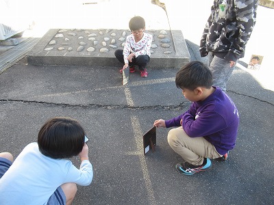 鏡を使って、光のリレーに取り組みました。鏡の角度に苦戦しながら、それでも何度も挑戦していました。こうしたチャレンジ精神は、実験では大切です!
