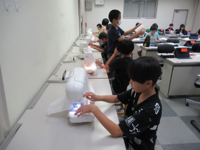 今回は、初めてのミシンです。操作・手順を確認しながら、果敢に挑戦する姿が多く見られました。ミシン縫いのよさをみつけて、制作に取り組んでいます。