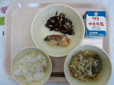 ごはん 牛乳 メバルの味噌チーズ焼き ひじきの炒め煮