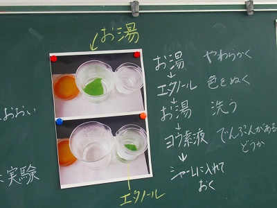 植物の葉に日光が当たるとでんぷんができるのかという実験に取り組みました。