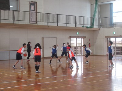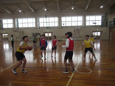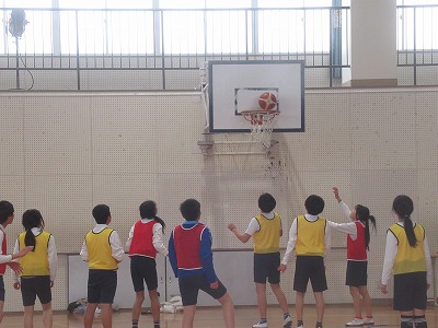 6年生は、バスケットボールのゲームをしています。
