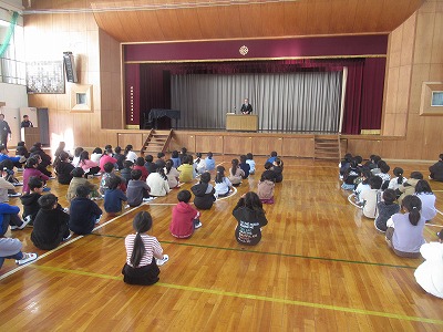 朝礼では、校長先生より、新年のあいさつとお話をされました。