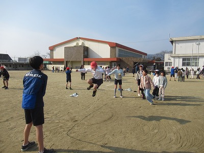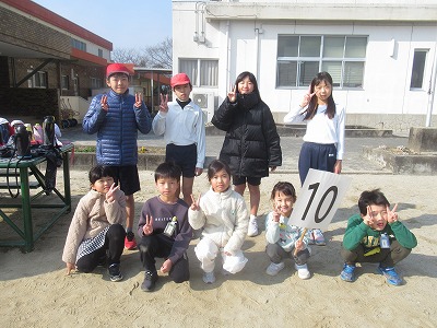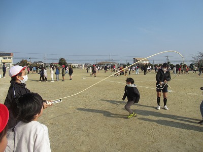 縦割りのグループ(なかよし班)で、長なわとびの跳んだ回数を競います。これまでの練習もあり、低学年の子が跳べるようになった姿、みんなで数を楽しく数えている姿が多く見られました。そんな姿を生み出したのは、高学年の子たちです。このステキな行動になったのも、年間を通して、縦割り活動で一緒に遊んでおおくの関わりができたからですね。跳んだ数で上位班の発表がありましたが、回数ではありません。多くの笑顔ができたみんな優勝です!ありがとうございました♪