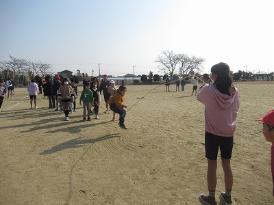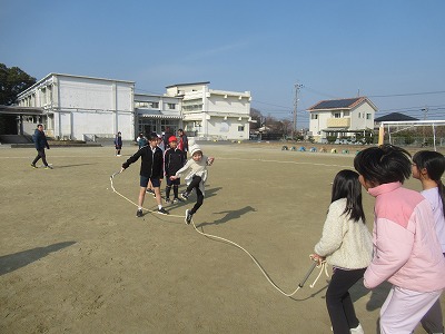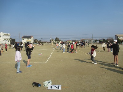 2限後の休み時間に、体育委員主催の『長なわ集会』を行いました。