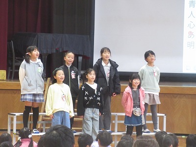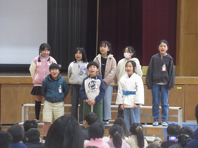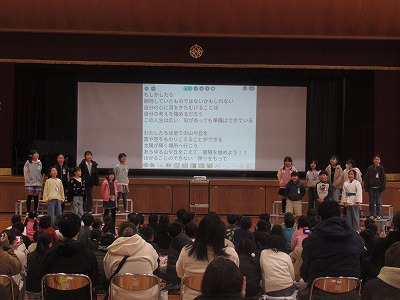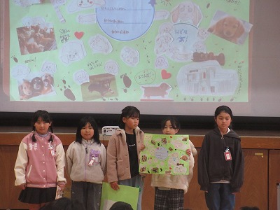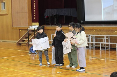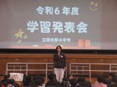 4年生は、一人一人が主役の自分の発表をしました。途中にクイズやインタビューを組み込み、見ている人を楽しませる工夫もありました。そして、一生懸命に伝えようとしている姿を見ている側が応援をするといった感じも伝わり、とてもあたたかい会場になっているのは、立北小みんながステキに思えるかけがえのない時が流れていました。国際理解もばっちりですね♪