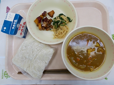 しらたまうどん 牛乳 カレーうどん 切り干し大根のごまびたし
