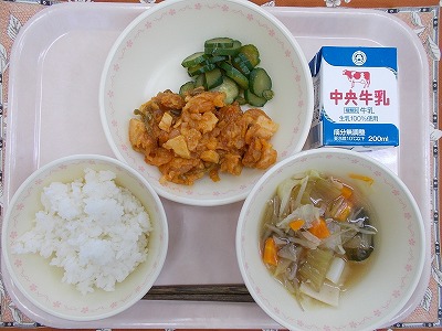ごはん 牛乳 野菜たっぷりのエビチリ きゅうりのおかか和え