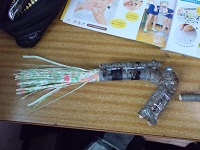 6年生の子どもたちは「おもしろ筆」づくりを行っていました。