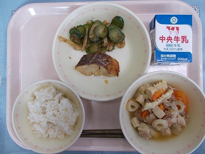 ロウカット玄米ごはん 牛乳 高野豆腐のふくめ煮
