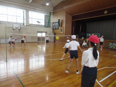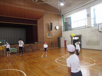 道具(ボール)やルール(キャッチ方式・得点方法)を工夫して、誰もが安心して楽しめる活動にしています。そして、今回はゲームをしました! 技能の差や力強さの差はありますが、それを感じさせないように怖がらず、楽しい雰囲気をみんなでつくっていました。「ナイス!」「いいよ!どんまい!」「すごい!」という言葉が自然に広がっていたからでしょうね。勝ち負けよりも大切なことを学んでいるようでした。