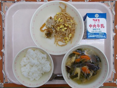 ごはん 牛乳 しゅうまいの野菜あんかけ 大豆もやしのピリ辛漬け