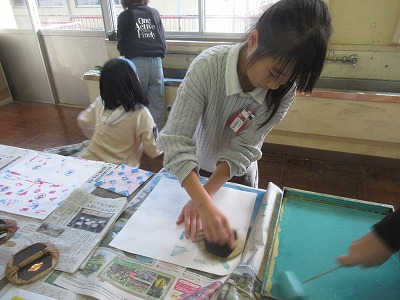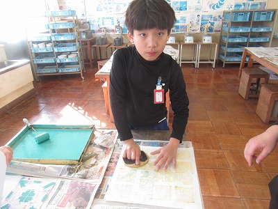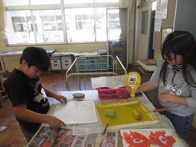5,6年も版画に取り組んでおり(5年:彫り進み版画・6年:一版多色刷り版画)、