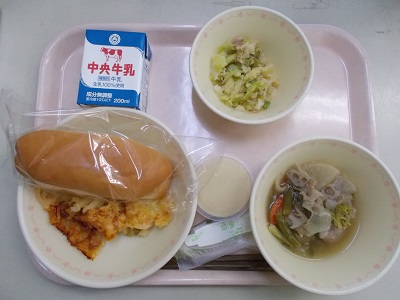 今日は月に1回の栄養強化献立の日です。今月は「カルシウム強化献立」です。カルシウムはキャベツやブロッコリーなどの野菜にも多く含まれています。あいさいポトフには名前の通り、ニンジンやレンコン、大根など愛西市のおいしい野菜がたっぷりと入っていました。野菜の奥まで味がしみ込むくらい煮込んであり絶品でした。初登場のレンコンプリンには、もちろん愛西市のレンコンが使われています。舌触りもなめらかでおいしくいただきました。