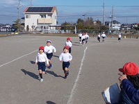 1年生の子どもたちにとってグラウンドを7周走ることはとても大変なことですが、ペース配分に気を付け、ゴールまで走り切る子どもたちの姿が見られました。