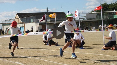 3・4年生はトラックを半周走りました。腕を振り、コーナーをうまく走り抜け、ゴールまで力いっぱい走りました。