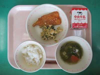 本日の献立:ごはん・牛乳・にぎすフライレモンソース・冬野菜の卵とじ・みぞれ汁