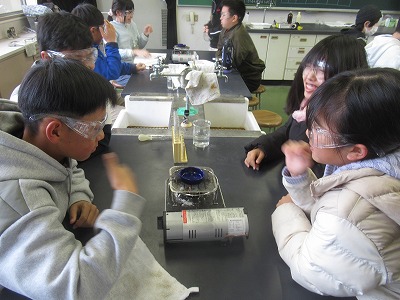 においや残るもの等、結果から分かることは何か、気づいたことは何かを深めて学習しています。何より、怖がりすぎずかつ安全に操作をして実験に取り組んでいる姿がとても素敵です♪