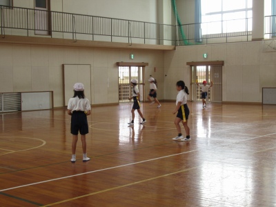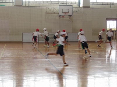 4年生は、体育の時間に男女別で尻尾取りをしました。自分のしっぽを守りつつ、友だちのしっぽを取ろうと狙うのはなかなか難しいことですが、楽しそうに取り組んでいました。