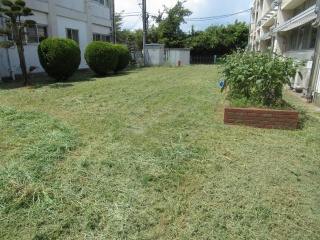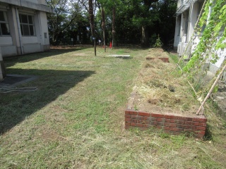 昨日・一昨日と、学校ボランティアさんに、中庭の草刈りをしていただきました。