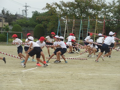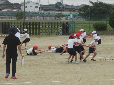 高学年は、力強さと作戦が勝敗を分ける種目です。自分たちで考えていくことを楽しく感じ、協力を大切にしつつ、真剣に取り組んでくれています。熱心に取り組みすぎてケガにつながらないようにしましょう。ルールを守って実施できるよう声をかけていきます。
