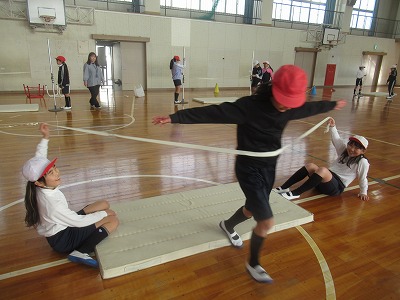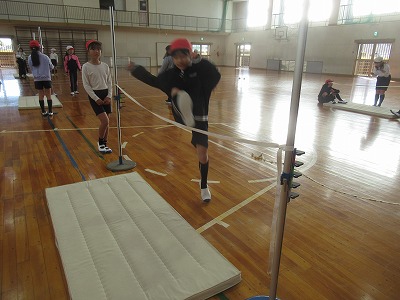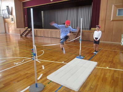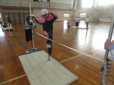 今日は、最初の試し記録会です。今回は、まずはどちらの踏切足で跳ぶのか?を試しながら各自考えていました。また、飛び越えるバーは『ゴムひも』なので、落としても安心感があります。低い高さから徐々に変わる高さに果敢に挑戦する姿はかっこいいですね!どんな記録になっていくのか、家庭でも話題にしてみてください。
