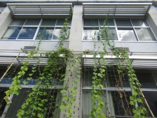 さて、夏休み間成長記録をしている「ヘチマ」はというと、つるの最上部がついに2階の一番上まで到達しました!また9月になったら、ぜひ見てください。