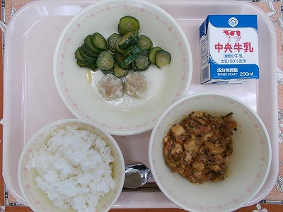 ごはん 牛乳 しゅうまい 麻婆豆腐 きゅうりの香和え
