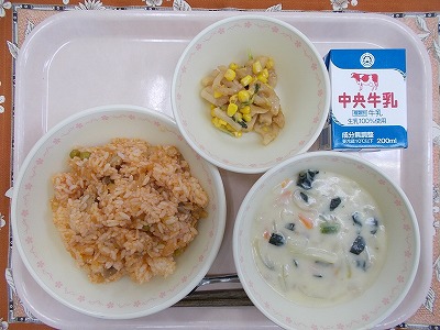 チキンライス 牛乳 クリームスープ れんこんサラダ