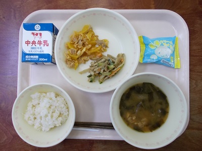 キムタクどんは子どもたちに大人気のメニューです。今日は「免疫力アップ献立」の日です。そのため、発酵食品のキムチが出されました。発酵食品をいただくと、腸内環境を整え、免疫細胞を活性化し、ウイルスなどから体を守る力が高まります。キムタクどんをおいしくいただき、胃腸も快調です。