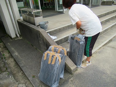 植木鉢や苗が入っていたかごを蟹江シルバー人材センターに持って行ってもらいましたが、まだまだ廃棄しなければならないものが残っていました。土やよごれなどが付着していると持って行ってもらえないとのことで、校務主任がきれいにして袋に封入して搬出してくれました。今日もありがとうございます。