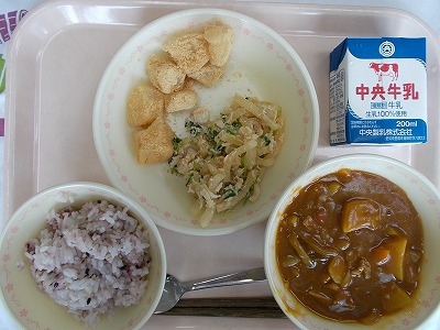 ズッキーニのカレーライス(五穀ごはん) 牛乳