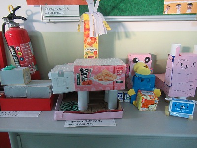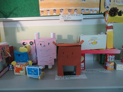 12月4日(土)の授業参観の折に、おうちの方と力を合わせて作り上げた、かわいい動物たちが「おとぎの部屋」の前の廊下に勢ぞろいしました。来週、個人懇談でご来校いただいたときに、保護者の皆様にお持ち帰りいただく予定です。