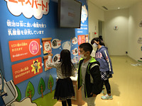明治なるほどファクトリーでは工場でどのように牛乳やヨーグルトが作られているかを教えていただいた後、工場内を見学させてもらいました。ものすごいスピードで製品ができることに子どもたちはたいへん驚いていました。