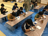 子どもたちは真剣そのもの。きれいに作ってお家の人へのお土産にしたいと意気込む子どもたちも多くいました。どのような作品が仕上がるか楽しみにしていてください。