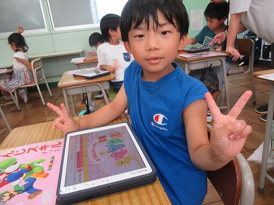 かん字の学習をしています。今日は復習として、タブレットのアプリで習ったかん字を確かめていました。自分のペースに合わせてやれたり、間違った問題を繰り返したりできます。できた時の嬉しさもあって、みんな楽しく取り組んでいました。