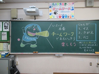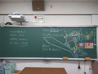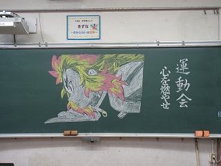 全学年、各担任から子どもたちへの運動会に対するメッセージが黒板に書かれていました。発達段階に応じて内容は様々ですが、どの子どもたちも大変喜んでいました。