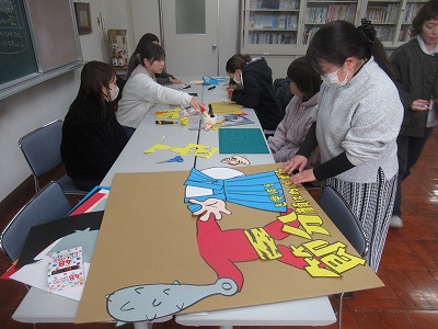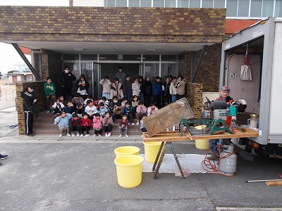 今回、保護者ボランティアに多くの方が参加してくださり、ポン菓子分け作業と『学べる顔出しパネル』の製作をしていただきました。ありがとうございました。明日、子どもたちへお披露目し、その様子も紹介します。