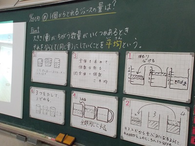 5年生の子どもたちが算数の時間に「平均」の学習をしていました。