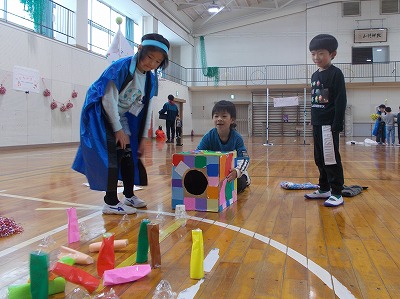 今日(11/13)、1年生をお迎えして『おもちゃ祭り』本番を行いました。