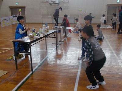 今日は遊び活動日で、運動場・体育館では、鬼ごっこ・ドッジボール、教室では、椅子取りゲーム・絵しりとりを行っていました。