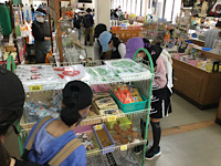 昼食の後はお買い物タイムです。お菓子やキーホルダーなど、どれも欲しいものばかり。予算の4000円を計画的に使うため品定めする子どもたちの姿が見られました。