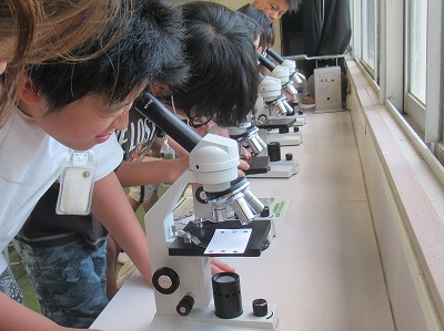 また、マグマが冷えて固まるときにできる鉱物を顕微鏡や虫眼鏡で観察しました。
