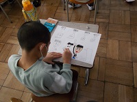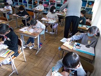 楽しそうに冬休みの思い出を席が近くの子と話しながら取り組んでいる子どもたちの姿が見られました。