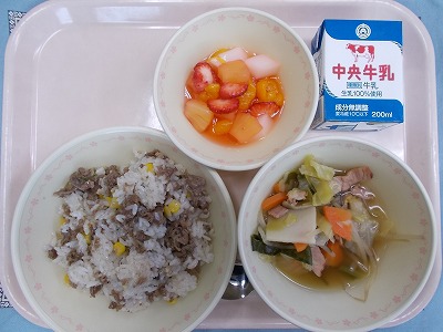 牛肉ペッパーライス 牛乳 ワンタンスープ