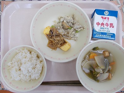 ロウカット玄米ごはん 牛乳 きのこのあんかけ玉子焼き