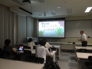 研修の内容は、ICTを活用した授業方法の応用編「ロイロノート」の活用です。